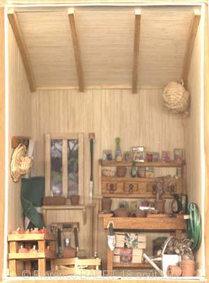 Réalisation en balsa, pâte Fimo, tissu, brins tressés pour le chapeau et le panier, perles.